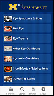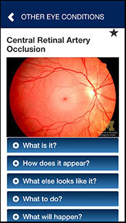 The app covers 134 eye conditions and contains 410 images, more than 40 narrated animations and videos, 6 screening exams and an eye anatomy review section.